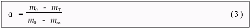 式中,m0为样品最初的质量,mT为在温度T时的质量,m∞为非等温实验结束时的质量。