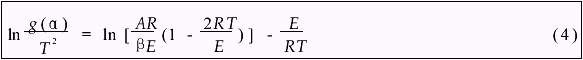 热降解反应动力学参数可根据CoatsRedfern方程求出: