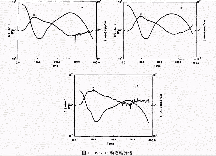 表3为PC膜、四种不同Fe3+含量的PC-Fe膜热失重测试结果。可以看出,受热温度小于300℃时,PC-Fe比PC有较大的热失重率。当温度达到了400℃时,PC-Fe与PC的热失重率相近。而在400~480℃较窄的温度范围内,PC的热失重程度较PC-Fe大得多,即在高温度的区域PC-Fe具有较好的耐热性。可见,PC加入Fe3+后,PC分子中的羟基与Fe3+发生配位作用,导致300℃以下,在进行聚合交联反应的同时,伴随着小分子如HCI、H20生成而失重,使得进一步聚合交联的聚合物在400℃以上表现出较大的耐热性。 2.5 PC-Fe涂膜的动态机械热分析(DM TA) 动态机械热分析可测定材料性能,它能直接提供材料在一定温度范围内粘弹性的变化和玻璃化转变温度,从中了解材料发生松驰行为及其内部分子进一步聚合交联时分子结构变化。图1(a)一(c)分别是不同Fe3+含量PC-Fe的DMTA曲线。由图可以看出,PC-Fe的玻璃化转变温度随Fe3+含量的增加而升高(82℃—96℃—98℃)。不同Fe3+含量的PC-Fe各样品的开始软化时模量E’均下降,但其模量E’降为最低值时温度是不同的,如Fe3+含量为0.98%的PC-Fe在105℃时模量降为最低值,而Fe3+含量为1.26%的PC-Fe则在120℃时模量降为最低值,即后者的E’大于前者,说明Fe3+含量较高的PC-Fe的刚度较高,即交联密度较大。由图还可以看出,随着温度的升高,E’曲线逐渐上升,材料进入热固化过程,模量逐渐升高,表明PC-Fe随温度升高进一步聚合,使交联密度进一步提高。当温度超过270℃以后,模量逐渐下降,表明分子交联度已基本达到饱和,不再进一步交联聚合。而且,随着Fe3+含量的增加,PC-Fe模量曲线走向逐渐趋于平缓,这表明加入金属离子越多,PC分子中的羟基与Fe3+的配位程度越高,使得PC分子链间交联更充分,导致在热作用下产物不易进一步聚合,故模量E’变化幅度减小。 总之,腰果酚醛铁聚合物的红外光谱、热重分析及动态机械热分析都说明Fe3+与腰果酚甲醛缩聚物分子中的羟基发生配位作用,并引起进一步交联。所以,与PC相比较,PC-Fe更难溶于大多数的有机溶剂,同时,玻璃化转变温度和耐热性能均得到提高。 参考文献 [1]LamSootKiongandJohnTyman.JournalOfChemiCal [2]KaleVVandKamathN.R.Paintindia,1954,4(3):27-34 [3]TymanJ.H.PChem.Commun·,1967,19:982 [4]KulkamiR.K,Paintindia,1964,14(1):108—109 [5]广州腰果壳液涂料研制协作组,涂料工业,1978,(2):10—16 |