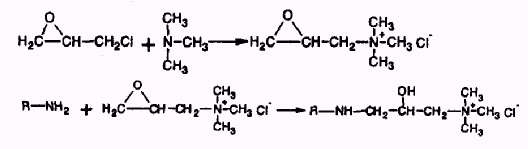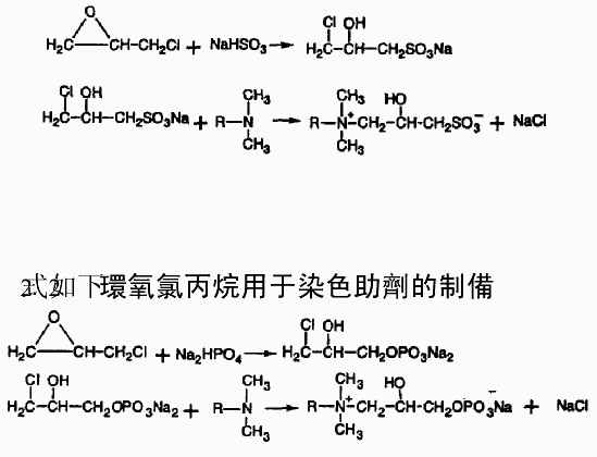 摘要:環氧氯丙烷是一种重要的有机合成中間体,在有机精細化學品的合成中有重要的作用,本文重點介紹了環氧氯丙烷在皮革化學品合成中的應用,尤其是在皮革加脂劑、染色助劑和合成鞣劑合成中的應用。 關鍵詞:環氧氯丙烷;皮革化學品;合成 1 前言 環氧氯丙烷(ECH)是一种揮發的、不穩定的無色油狀液体,有類似氯仿的气味,有毒,与多數有机溶劑混溶,微溶于水,密度1 18066g/cm3,沸點116 .11℃。 環氧氯丙烷是一种重要的有机合成中間体,以它為原料制得的環氧樹脂在涂料、膠黏劑和電子層壓材料等領域被廣泛應用。環氧氯丙烷還可用于生產合成甘油、硝化甘油炸藥、玻璃鋼、電絕緣品、表面活性劑、醫藥、農藥、涂料、离子交換樹脂、增塑劑、氯醇橡膠等。這些精細化工產品廣泛應用于化工、輕工、交通運輸、醫藥、涂料、食品、電子電器等行業[1]。目前,我國環氧氯丙烷的消費比例為:環氧樹脂占85%,合成甘油占7%,氯醇橡膠占2%,其它(包括溶劑、穩定劑、表面活性劑、阻燃劑、油田化學品、水處理劑等)占6%。 環氧氯丙烷分子上含有一個環氧鍵和一個C Cl鍵,均具有很強的反應活性,因此是一种雙官能團化合物。其中環氧鍵容易与含活潑氫有机化合物,如脂肪胺、脂肪醇和脂肪酸等發生加成反應,也易和含質子的無机鹽,如亞硫酸氫鈉、磷酸一氫鈉和磷酸二氫鈉等發生加成反應,是一种常用的烷基化試劑,而氯烷也是一种常用的烷基化試劑,容易与含活潑氫的有机化合物,如脂肪胺和脂肪醇等,以及無机鹽,如亞硫酸鹽,發生取代反應[2]。另外,環氧氯丙烷還容易自聚或与多元胺發生聚合反應。環氧氯丙烷的這种特殊結构,以及較高的反應活性,使之在包括皮革化學品在內的各种精細有机化學品的合成中有廣泛的應用。 皮革化學品是一种有著鮮明特色的精細化學品,比如較強的專用性,利潤相對較高,產品更新快等,所以多年來像BASF、Bayer和Rohm&Haas等國際化學工業巨頭,在皮革化學品研究開發方面投入了不少人力、物力和財力。皮革化學品合成的原材料來源非常廣泛,有机的、無机的、天然的、合成的等,在皮革化學品的新產品研究開發中,其中很重要的一個方向就是擴展原材料的來源范圍,嘗試新的、更多的适合用于皮革化學品合成的新方法。尤其在复鞣劑、加脂劑和涂飾劑的制備中,研究者為了滿足皮革產品對皮革化工材料的新要求,通常要在產品的開發中引入新的原料和新的合成方法。本論文重點介紹了環氧氯丙烷在皮革加脂劑、染色助劑和复鞣劑等皮革化學品合成中的應用。 2 環氧氯丙烷在皮革化學品合成中的應用 2 1 將環氧氯丙烷用于加脂劑的制備 加脂劑是制革過程中用量最大的一類化學品,其有效物成分包括中性油和活性物,而活性物本質上是一种表面活性劑,因此加脂劑的制備過程實際上也就是表面活性劑的合成。本文主要介紹環氧氯丙烷在陽离子皮革加脂劑和兩性皮革加脂劑合成中的應用。 2 1 1 將環氧氯丙烷用于陽离子皮革加脂劑的制備 陽离子加脂劑是一類具有獨特性能的加脂劑,雖然它的品种、用量以及在制革生產中的重要性都遠不如同為加脂材料的陰离子產品,但它在成革表面的油潤性、手感、固色、絲光感和減少廢液的污染以及其它物理机械性能等方面的獨特作用,使其成為制備高檔革不可缺少的材料。近年來,陽离子加脂劑在制革生產中的用量和使用范圍正在不斷地增加和擴大,在開發和研究陰离子加脂劑的同時,研究人員也重視對陽离子加脂劑的開發和研制[3]。 以環氧氯丙烷為原料制備陽离子皮革加脂劑,主要分兩步,首先環氧氯丙烷与三甲胺反應得到3-氯-2-羥丙基氯化銨,然后再与長鏈脂肪胺反應得到目的產物,示意性反應式如下: