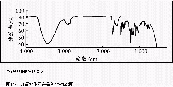 2.6产品的结构表征 产品的结构用红外光谱(FT-IR)来表征。图1(a)为F-44环氧树脂的FT-IR谱图。图1(b)为产品经精制后的FT-IR谱图。