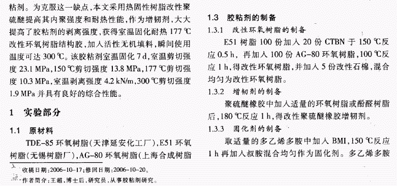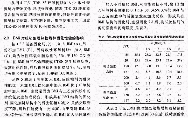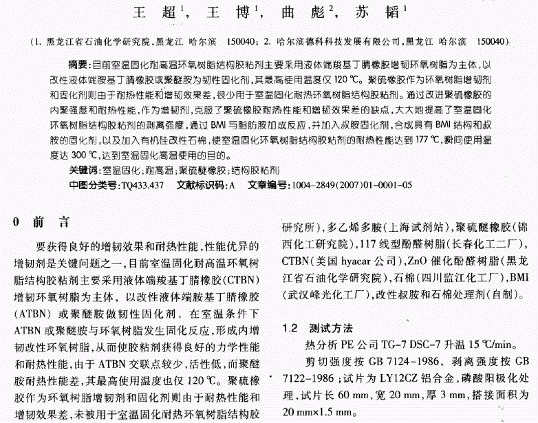 聚硫醚改性环氧树脂室温固化耐高温结构胶粘剂