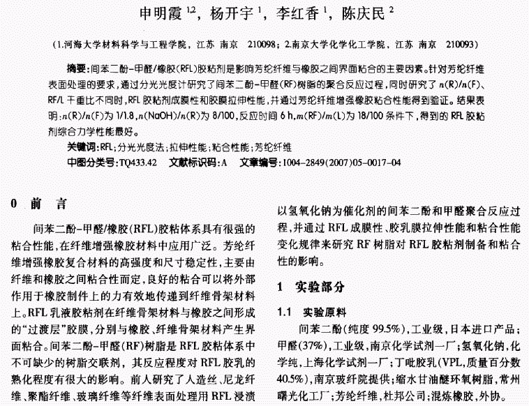 间苯二酚-甲醛/橡胶胶粘剂及其粘合性能研究 5月 5, 2010// Tagged: 环氧树脂 Related Posts 环氧树脂的阳离子聚合型固化剂 发泡酚醛树脂室温固化热力学研究 耐高浓度无机酸防腐涂层的研制 Leave a Reply Cancel reply要发表评论,您必须先登录。