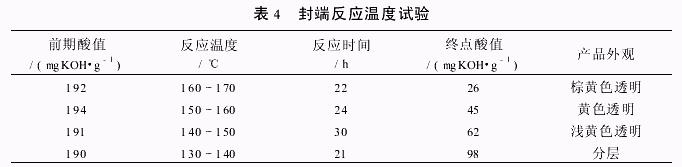 2 .4 封端反应温度 在不同的封端反应温度下试验结果见表4.