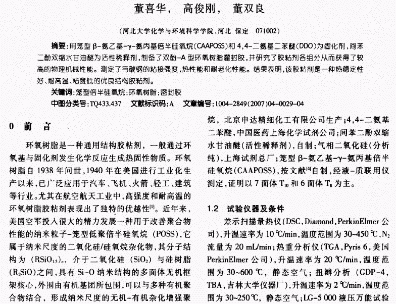 以氨基笼型倍半硅氧烷为固化剂的环氧树脂灌封胶 4月 28, 2010// Tagged: 固化剂专家 Related Posts 环氧树脂的阳离子聚合型固化剂 发泡酚醛树脂室温固化热力学研究 耐高浓度无机酸防腐涂层的研制 Leave a Reply Cancel reply要发表评论,您必须先登录。